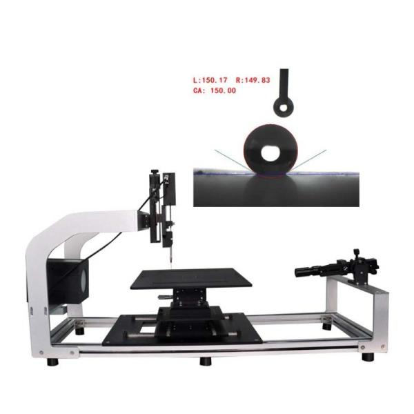 The instrument adopts the modern manufacturing technology, instrument adopts advanced special CCD digital camera, high resolution zoom microscope with times background and high brightness LED light source system, match 3 d sample sets, workbench can be up and down, left and right sides, front and rear direction.To achieve the micro - sampling and up and down, left and right precision movement.It also designed the telescopic rod structure table, which can adapt to the occasion of increasing the thickness of different user materials.The instrument frame can be adjusted according to the size of the style, and the scope of the instrument can be expanded.The software collocation correction function, the test results can be saved in the same report several times, can let the user better control the material data.The instrument is designed to be beautiful, easy to operate and meet the needs of users.Applicable to all kinds of industry determination of contact Angle users